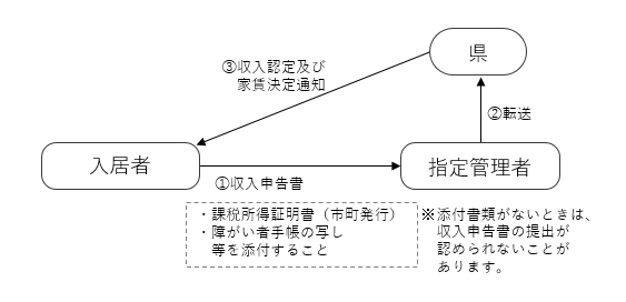 | ・同居者の増減や、退職によって収入が減ったので、家賃の算定をやり直してほしい。 | 収入認定変更申請 |